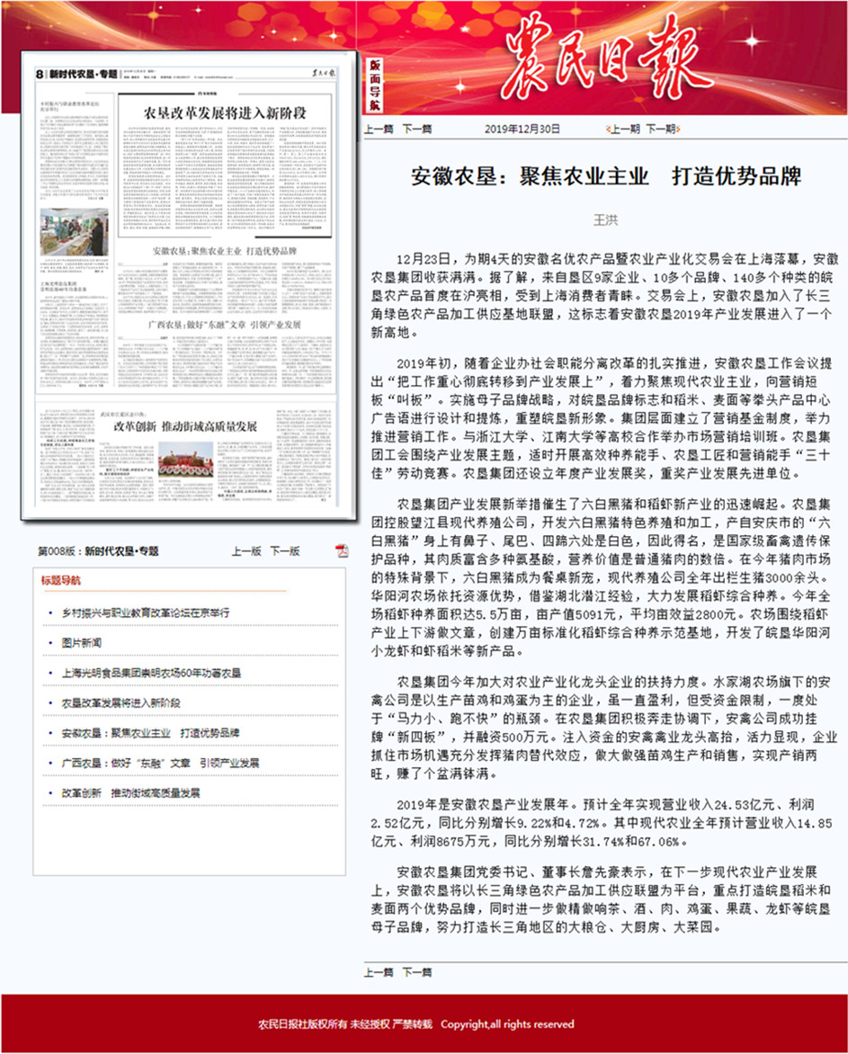 安徽农垦集团:安徽日报农村版:安徽农垦打造产业发展新高地