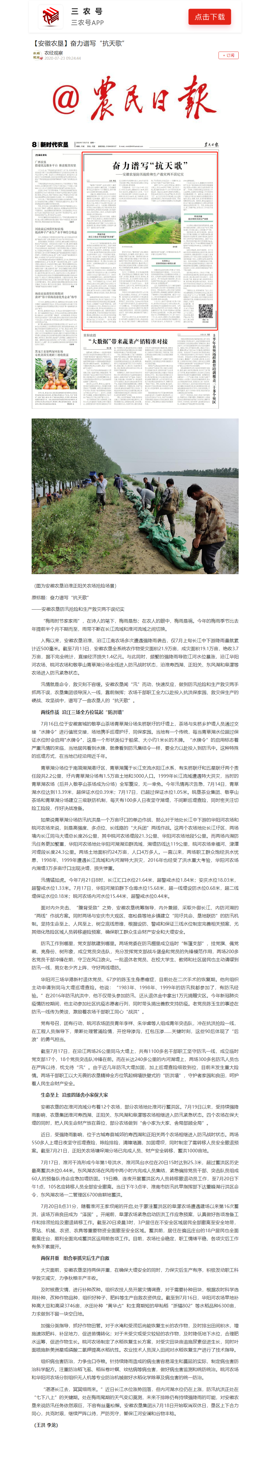 安徽日报:闻“汛”而动 农垦全力抗洪保产