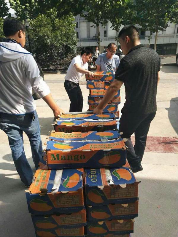 今年海南农垦水果大丰收,但近期销售难、卖价低、果农愁,尤其是广坝农场公司芒果滞销严重。海垦集团发来求助信息,安徽农垦集团高度重视,总经理刘超亲自安排协调,由皖垦农产品超市牵头助销,制定工作方案,广泛动员集团总部及在肥所属企业,联系五星等水果经销商,仅一周时间就销售爱心芒果9.2万斤,倾情支持和帮助广坝果农尤其是贫困职工渡过难关,充分诠释了农垦一家亲的大爱情怀。