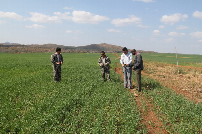 围绕当前工作,韩大鸣在讲话时首先肯定了SISI农场近阶段取得的工作成绩,他说,皖津公司入驻SISI农场仅仅两个多月,在大家的一致努力下,顺利完成了402公顷小麦种植任务,田管工作稳步推进,追肥化除效果初显,这充分说明我们的努力和付出是值得的。就下一步工作,韩大鸣强调,要“抓两头带中间”,抓好优势地块和弱势地块这“两头”,前者主要检验我们产量水平的最高值,后者主要体现我们的管理方式是否奏效,不拖产量的后腿,更重要的还是要带起中间地块,这是产量的主体,可以提升整体产量水平。韩大鸣要求,要时刻掌握小麦生长情况,积累田管经验,为来年生产提供科学依据;要超前谋划种植结构调整,大胆探索尝试,针对津巴布韦的客观条件,用好当地优势资源,多措并举,主动应对,最大限度地提高农场经济效益;要积极思考下步工作安排,如收获、运输、雨季种植等,避免临阵磨枪、慌乱被动。关于未来发展,韩大鸣指出,重点是要在管理创新和经营思路上下功夫,首先,要不断创新管理模式,输出先进管理理念,充分利用当地人才社会资源,理顺管理链条,降低管理成本,同时,要结合当地法律法规和风俗礼仪,搞好制度建设,在制度本土化的基础上迈向全球化;其次,要不断创新经营方式,积极探索尝试走以种植业为主、多业并举、产业化发展的路子;第三,国际化人才要有国际化的眼界和思维,我们的经营管理团队要提高自身综合素质和心性品性,加强内部团结和外部联络,形成工作合力和向心力。